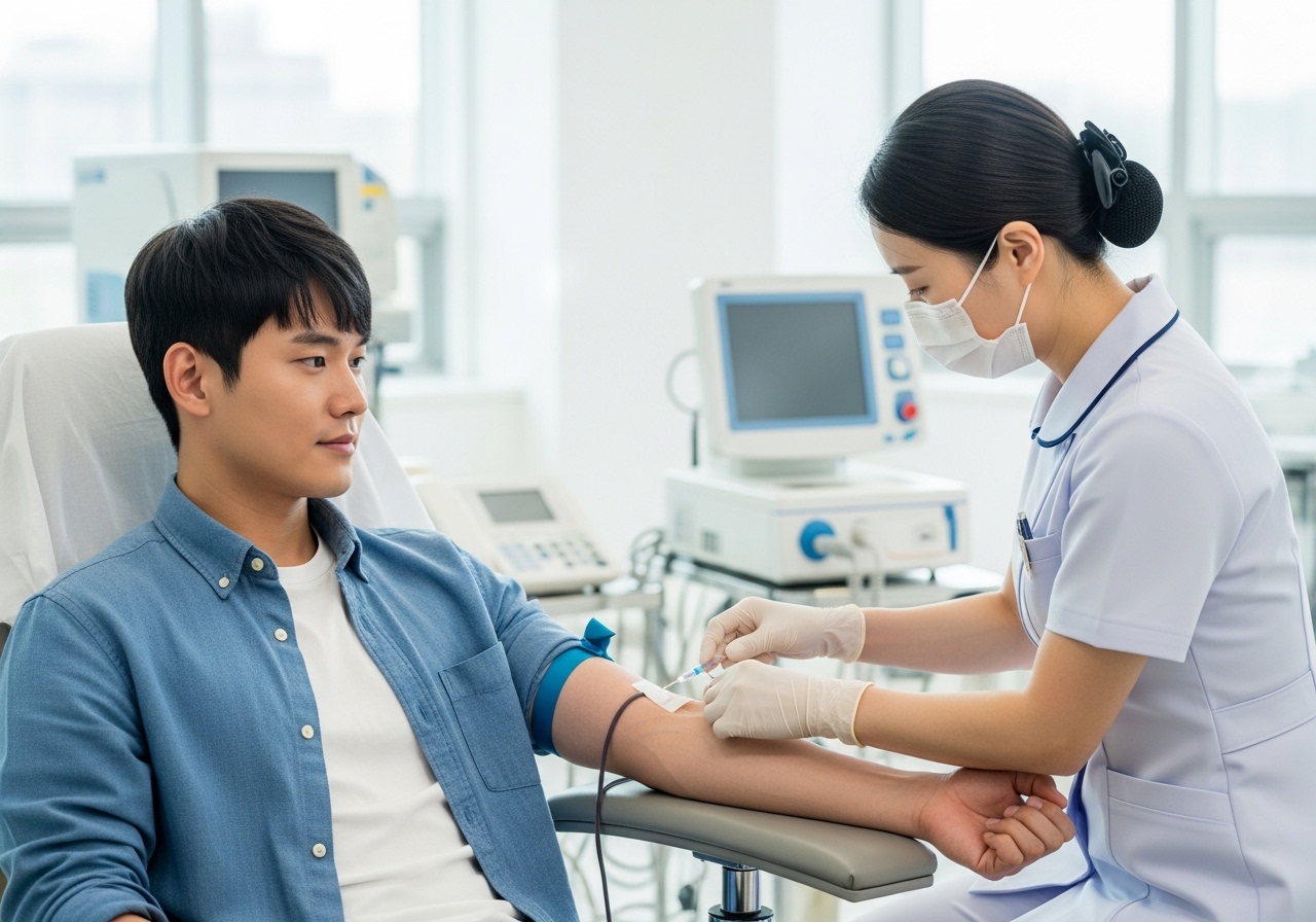 당뇨 여부는 주로 혈액 검사를 통해 확인합니다.